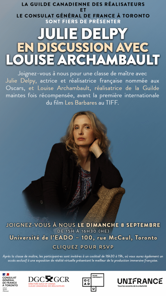 Join us for a masterclass with Academy Award nominated French writer, actor, and Director, Julie Delpy, with multiple award-winning DGC Director, Louise Archambault in the lead up to the international premiere of Meet the Barbarians (Les Barbares) at TIFF.